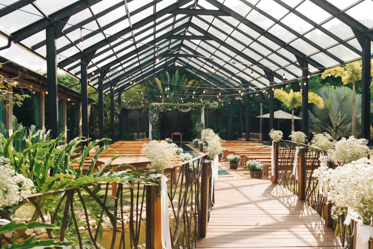 Ambiente imersivo no verde, aconchegante e autoral, ideal para mini weddings e eventos personalizados.