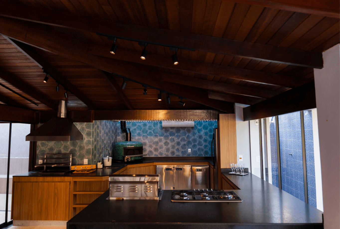 Área de lazer completa: piscina, firepit e quadra de beach tênis